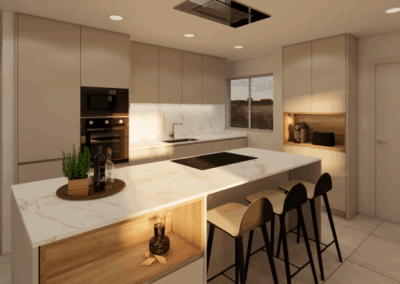 Gracias a nuestras imágenes en 3D realistas, podrás ver cómo quedará tu cocina antes de fabricarla. Esto no solo te da tranquilidad sino que facilita la toma de decisiones en cuanto a distribución, materiales, colores y acabados.