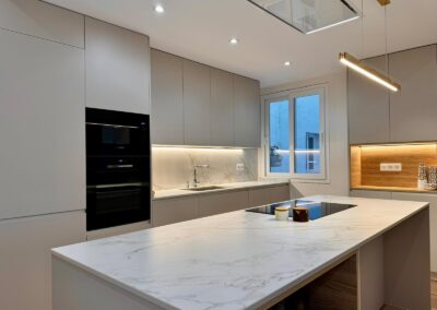 Diseñamos y fabricamos nuestro propio mobiliario de cocina a medida, lo que nos permite garantizar la calidad, controlar los tiempos y adaptar cada módulo a la perfección. Trabajamos con materiales resistentes, modernos y sostenibles.